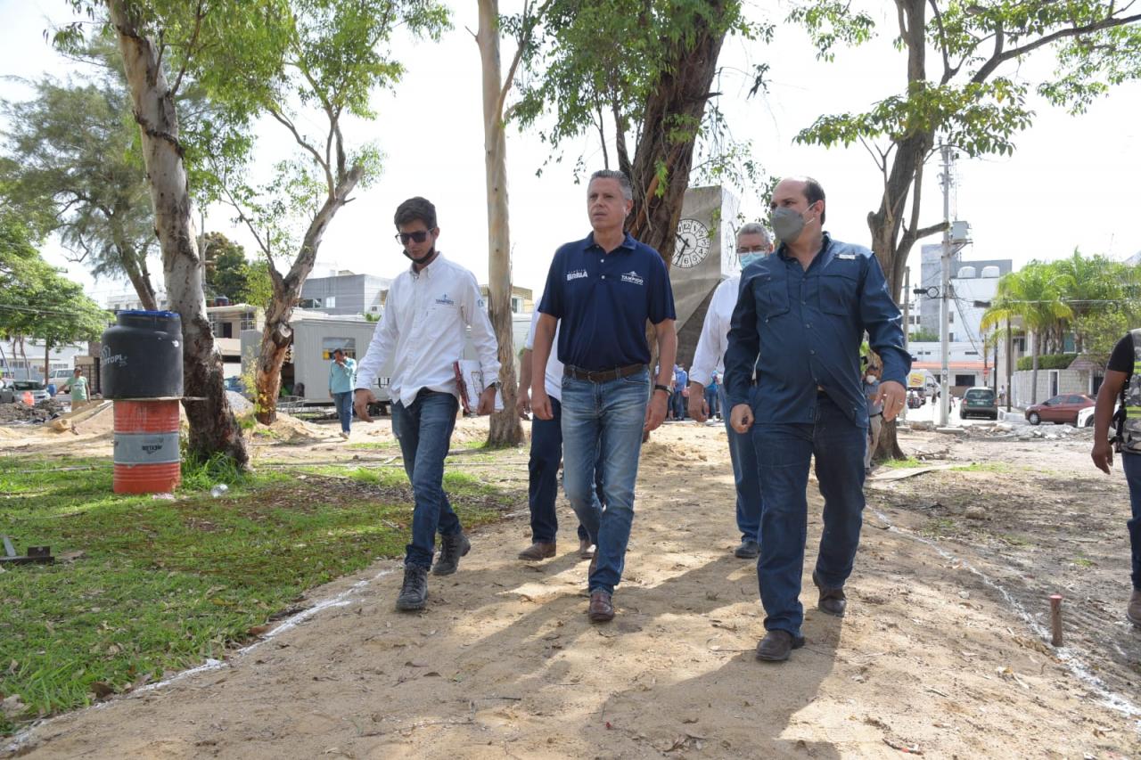 "Este día estamos supervisando los trabajos en esta histórica plaza, la cual estaremos transformando integralmente para darle a las familias tampiqueñas, nuevos espacios para la convivencia, integración y desarrollo", indicó.