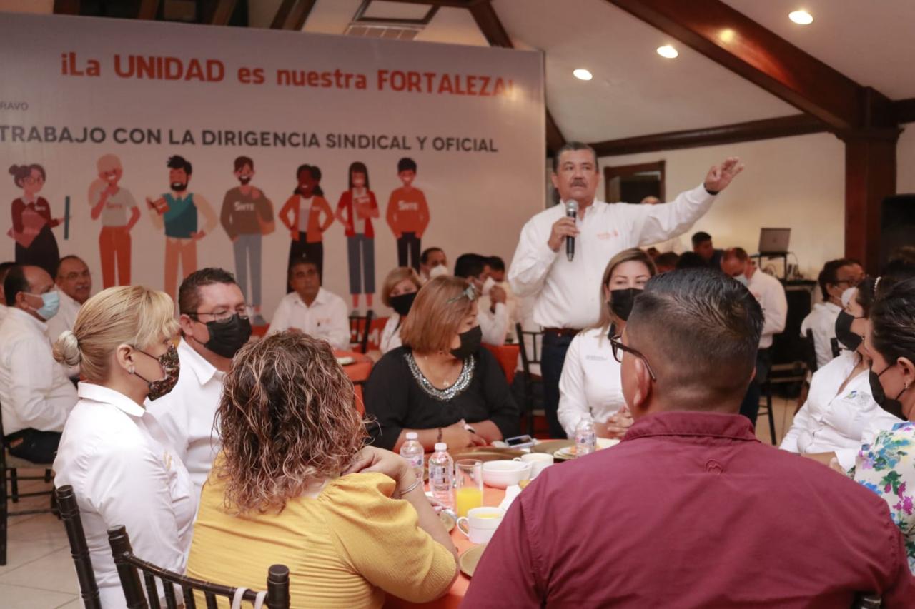 Dentro de las actividades de difusión e información del pliego de demandas 2022, hizo un llamado a la unidad sindical y a fortalecer a la organización, para conservar e incrementar los beneficios que a lo largo del tiempo han conquistado los grandes líderes y sobre todo apoyados y respaldados por la base sindical.