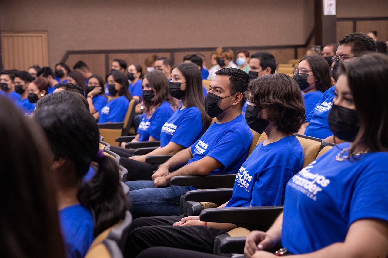 Durante el evento realizado en el Teatro Universitario, el Rector Guillermo Mendoza tomó la protesta al grupo de jóvenes que han asumido el compromiso de formar parte de esta plataforma, cuyo modelo, basado en la responsabilidad social universitaria, busca impulsar su participación en proyectos vinculados al desarrollo de las comunidades tamaulipecas.