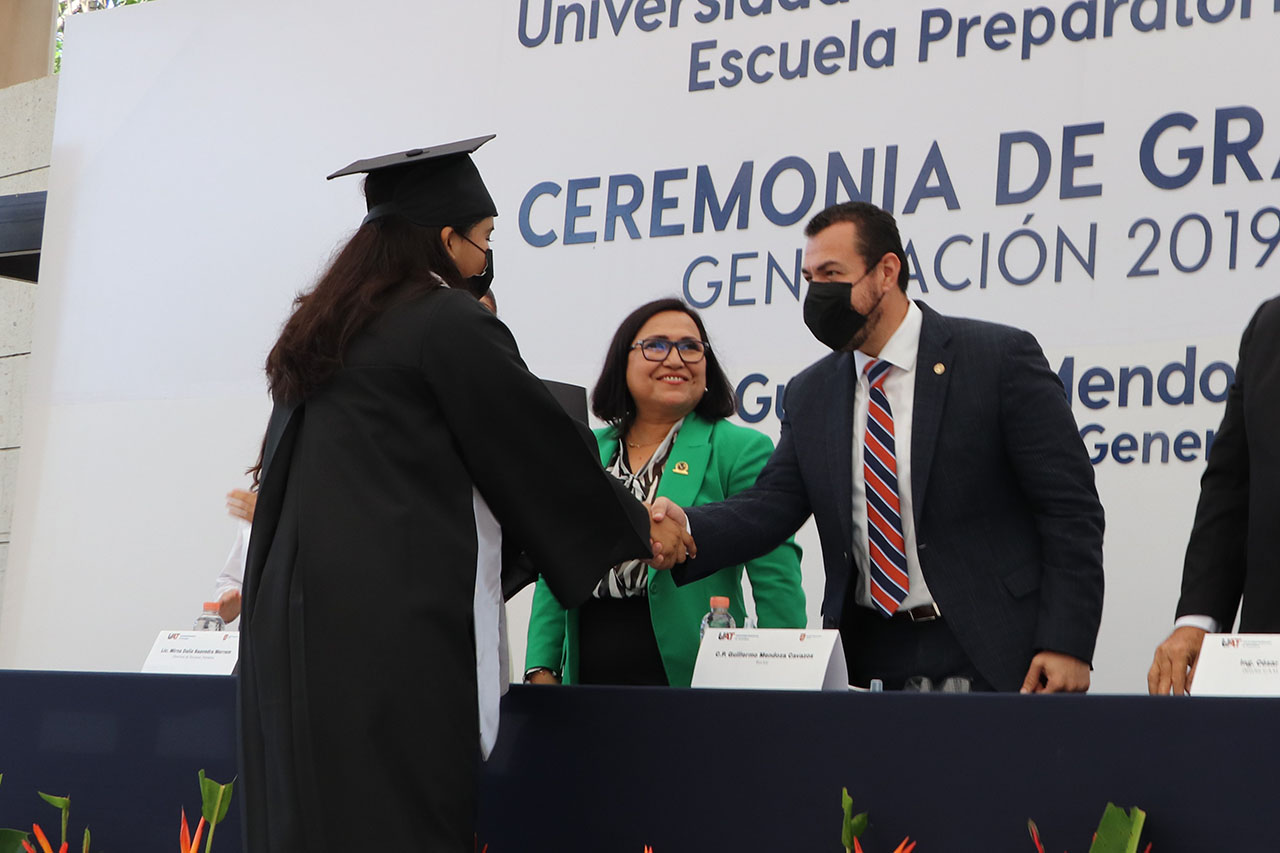El Rector también reconoció la labor del personal docente y administrativo de esta preparatoria por la formación de una generación única que, además de destacarse por los conocimientos adquiridos, se comprometió a concluir su educación en condiciones inéditas durante la pandemia.