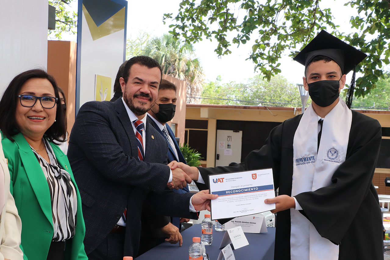 La Escuela Preparatoria Mante de la Universidad Autónoma de Tamaulipas (UAT) llevó a cabo la ceremonia de graduación de la generación 2019-2022, en un significativo acto académico que presidió el Rector Guillermo Mendoza Cavazos, como padrino de los 305 estudiantes que egresan de esa institución de educación media superior.