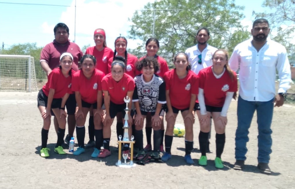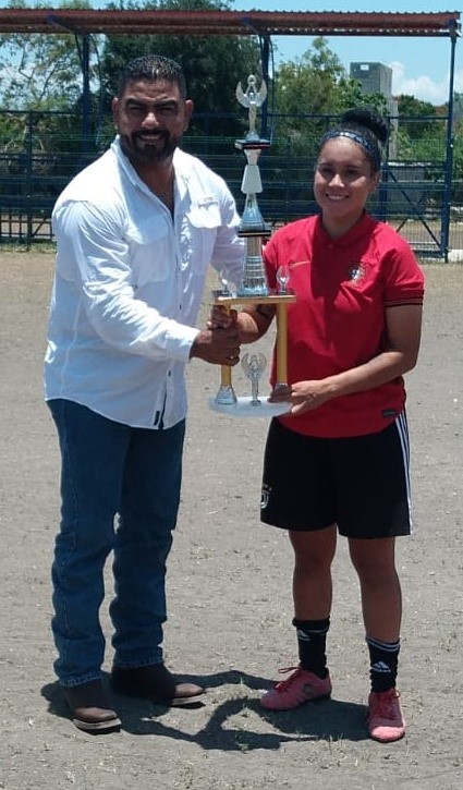 Ciudad Victoria.- Con la honrosa representación del alcalde Eduardo Abraham Gattás Báez, el jefe del Deporte de Victoria, Carlos Pizaña, hizo entrega del trofeo al Deportivo Velázquez Colenca, ganador del torneo cuadrangular de fútbol femenil “Nosotras también”.