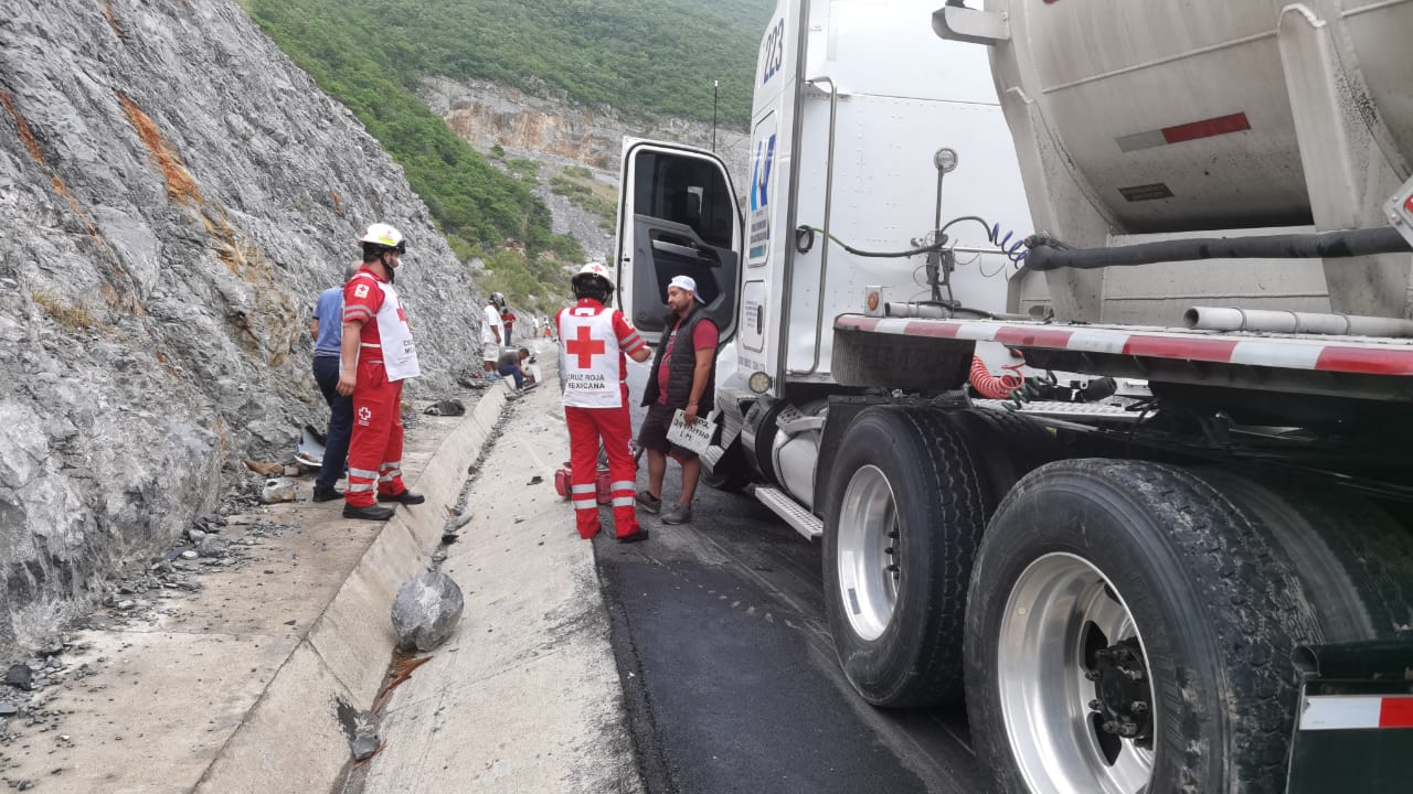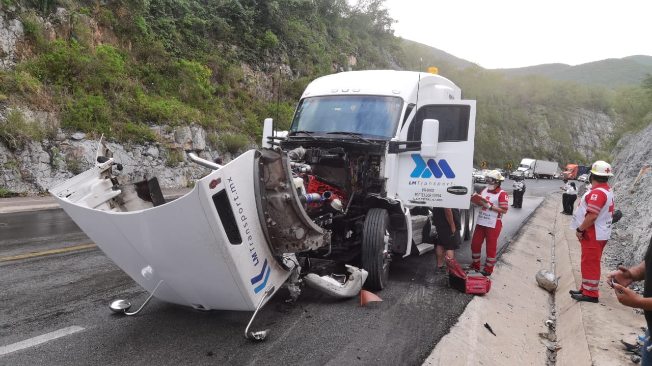 Al circular por la carretera Rumbo Nuevo, a la altura del kilómetro diez, en el tramo Victoria Jaumave al salir de una curva, por circular a exceso de velocidad el trailero perdió el control de la pesada unidad y terminó por impactarse contra el talud de la sierra.