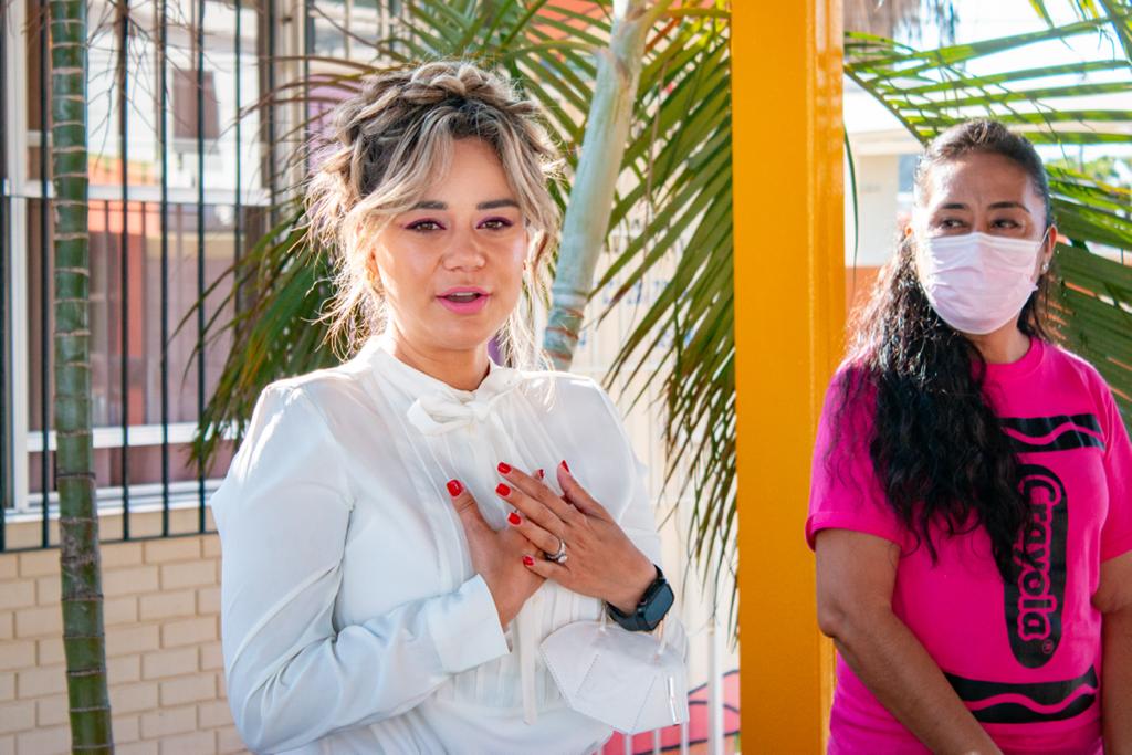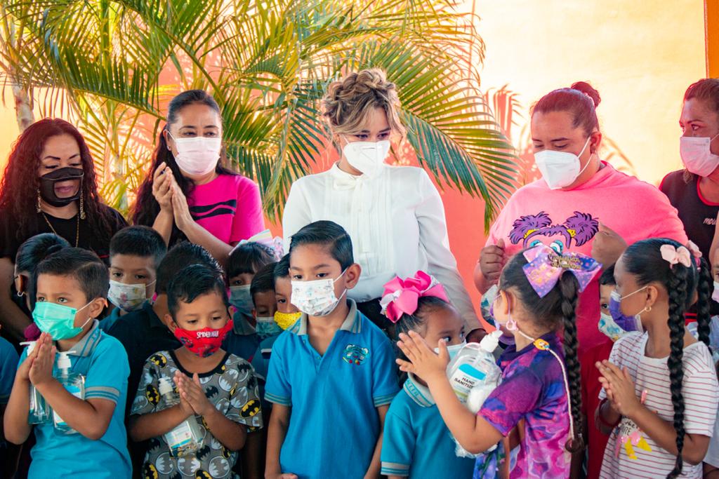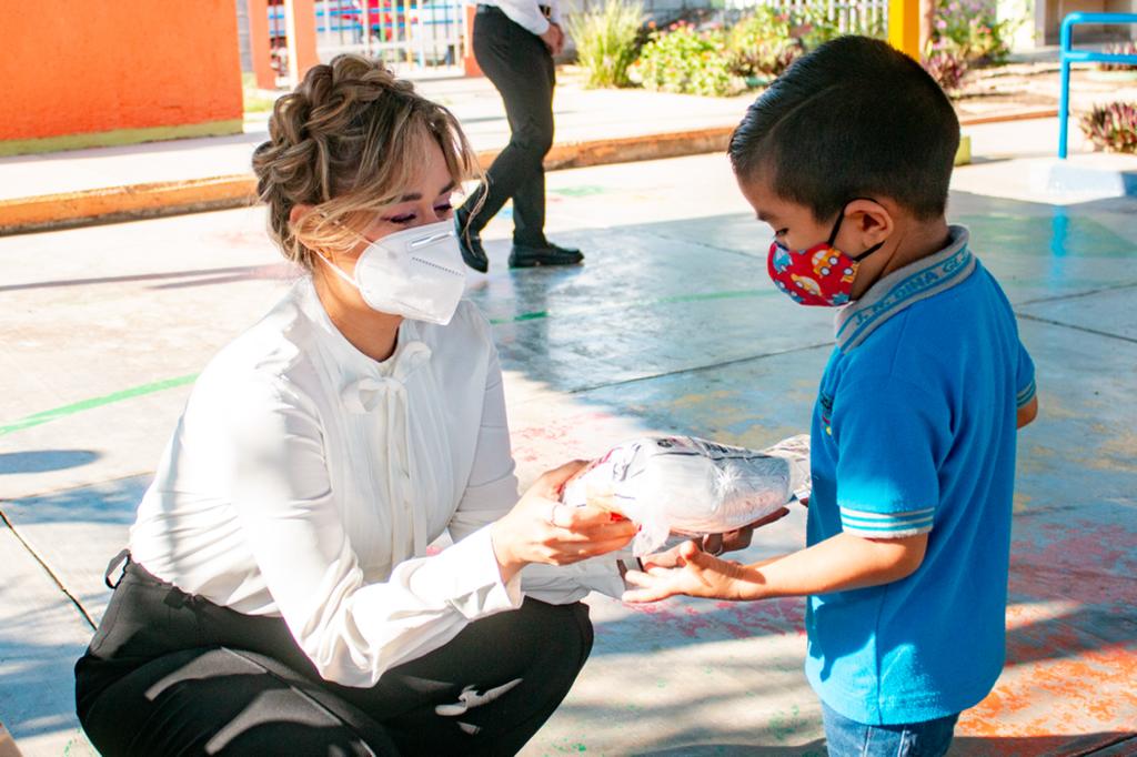 Este viernes acudió al Jardín de Niños “Dina González Blackaller” para dotar de Kits de higiene a alumnas, alumnos y personal docente de la institución.