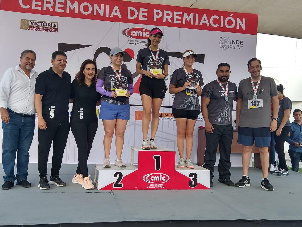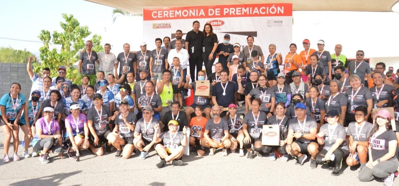 Acompañando a Rodolfo Terán y Oscar Silva, presidente de la CMIC Victoria y coordinador general de la carrera atlética, Carlos Pizaña integró el panel de invitados en la premiación final, en donde hubo rifa de regalos y bicicletas.