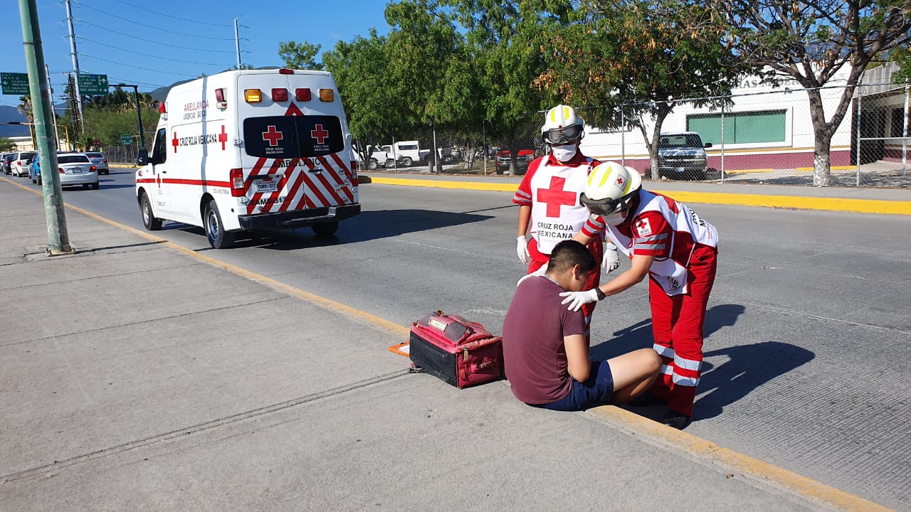 Después de ser atendido en el lugar por los paramédicos de Cruz Roja Mexicana el motociclista fue trasladado a la clínica Hospital del IMSS.