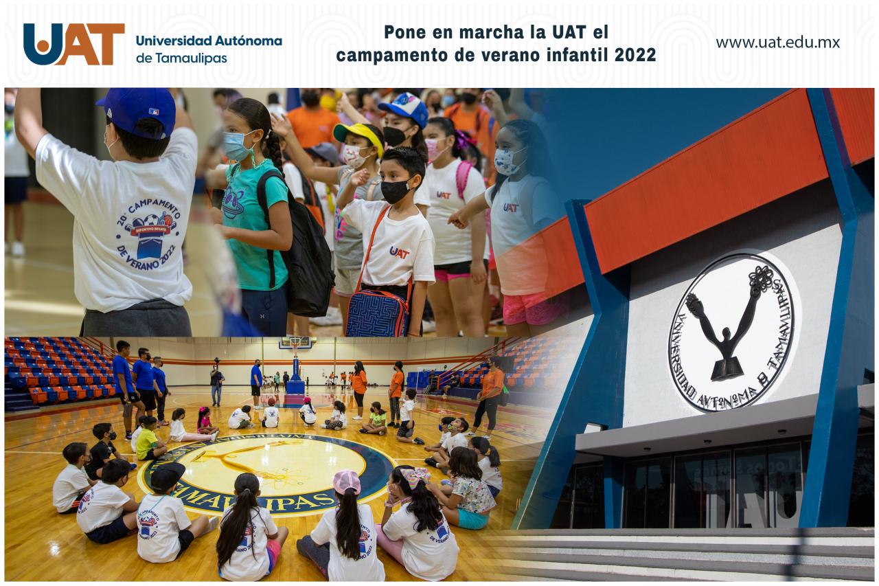 La Universidad Autónoma de Tamaulipas (UAT) puso en marcha el vigésimo Campamento de Verano 2022 que organiza el Gimnasio Multidisciplinario Victoria, donde más de ciento veinte niños, tanto hombres como mujeres, recibirán durante dos semanas clases de diversas disciplinas deportivas, artísticas y culturales.