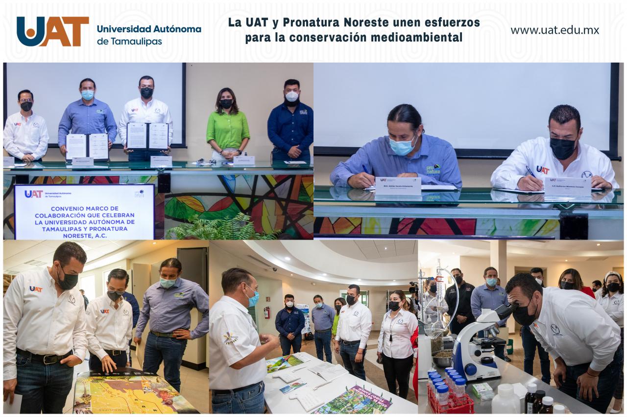 La Universidad Autónoma de Tamaulipas (UAT) firmó un convenio de colaboración con Pronatura Noreste A.C., con el propósito de trabajar en iniciativas para la conservación de la flora, la fauna y los ecosistemas prioritarios del noreste de México, tales como el proyecto Área Natural Protegida “Paisaje Natural de la Mariposa Monarca”.