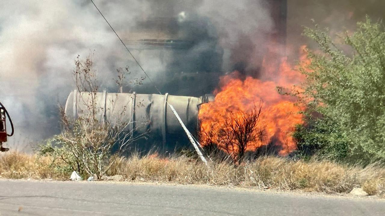 De acuerdo con información proporcionada por la Fiscalía General de Justicia del Estado, el choque del tren contra la pipa doble remolque ocurrió a la altura del ejido El Olmo, entre la salida a la Carretera Rumbo Nuevo y el crucero conocido como El Cuerudo.