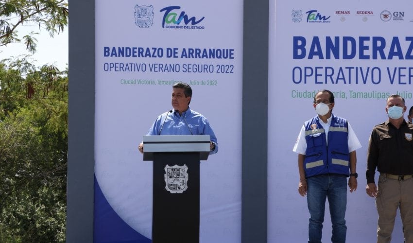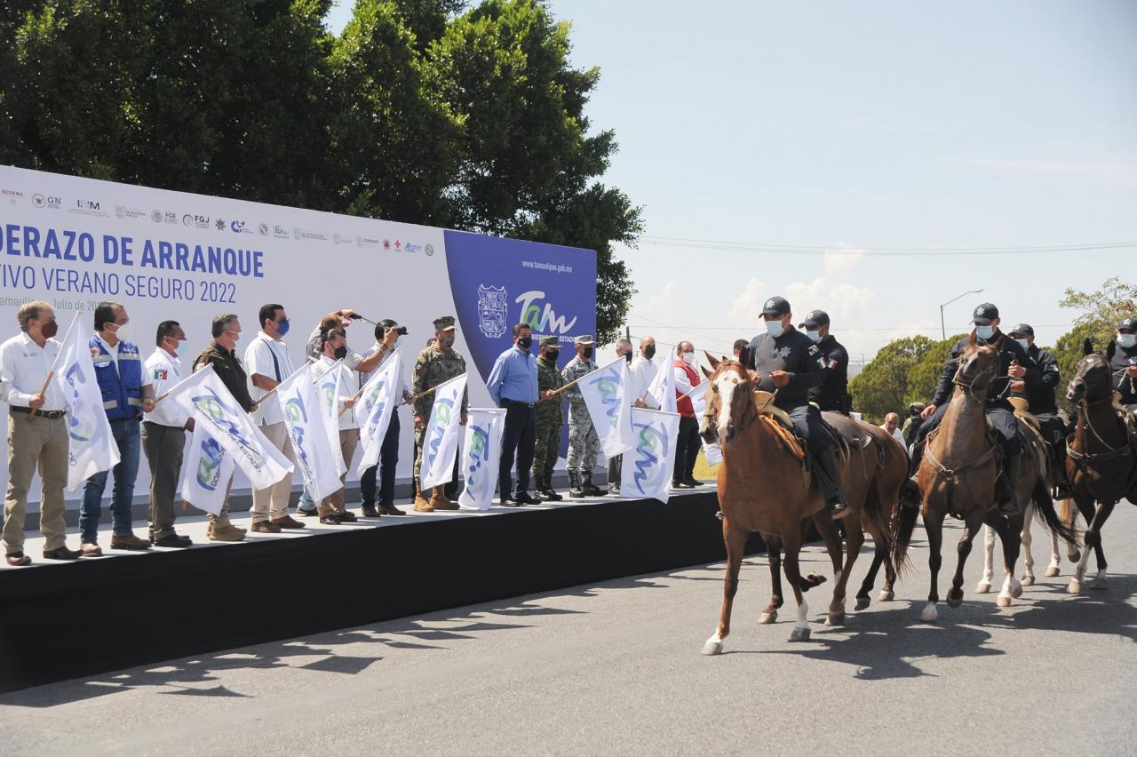Ciudad Victoria, Tamaulipas.- Desde la capital de Tamaulipas arrancó este jueves el Operativo Verano Seguro 2022, en el que participan de manera conjunta todas las corporaciones municipales, estatales, federales, cuerpos de auxilio y dependencias de Gobierno, con el objetivo de garantizar a los turistas y paseantes unas vacaciones tranquilas y atención inmediata en caso de cualquier emergencia durante su traslado o estancia en los destinos turísticos con los que cuenta la entidad.
