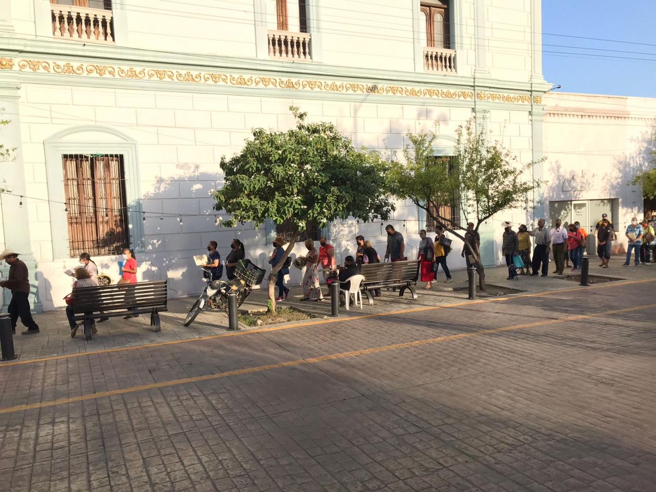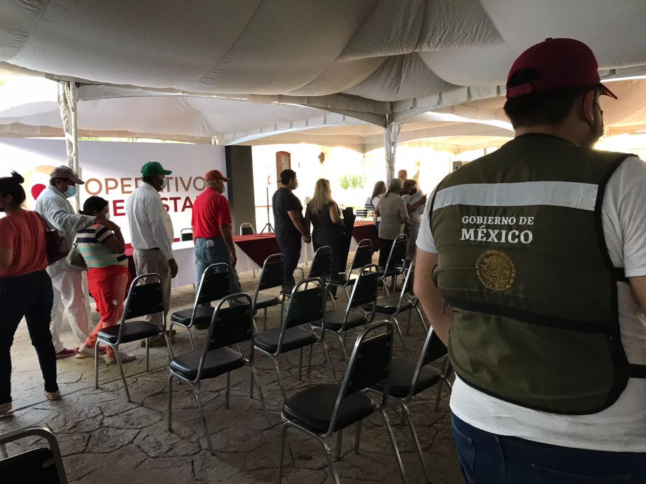 Cabe señalar que a la llegada a Presidencia Municipal los beneficiarios de los programas de Adulto Mayor y Personas con Discapacidad son recibidos por Servidores de la Nación y en la explanada de la Presidencia se encuentra instalado un toldo con capacidad para mil personas a las cuales se ofrece por parte del Municipio puestos de hidratación y café.