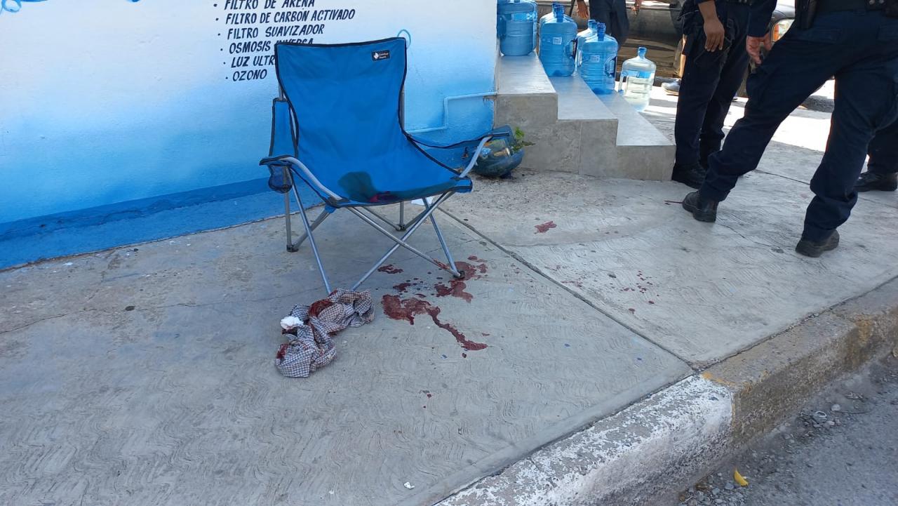 El sujeto presentaba en el cuello una herida cortante de varios centímetros de largo, por lo que dejó la banqueta manchada de sangre en el lugar en donde los vecinos le pusieron una silla para que esperara la llegada de los paramédicos.
