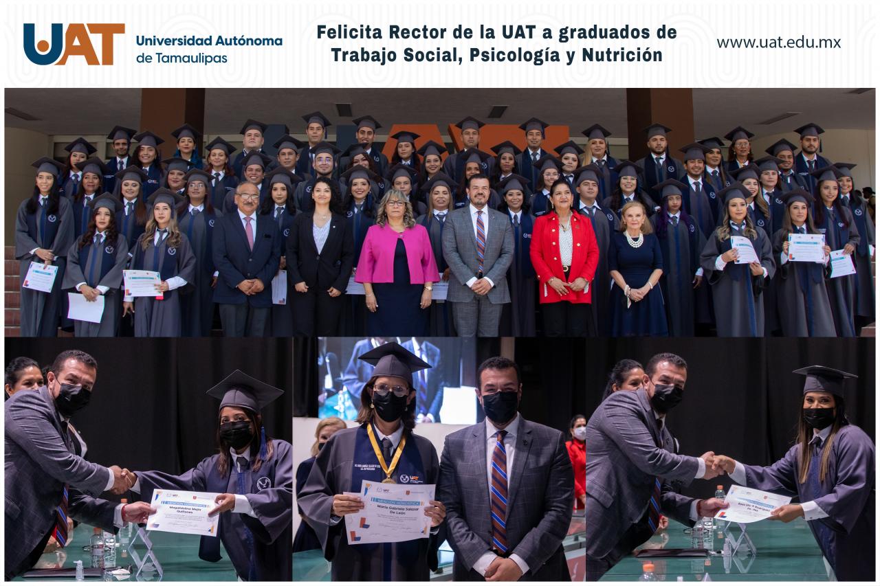 La Unidad Académica de Trabajo Social y Ciencias para el Desarrollo Humano (UATSCDH) de la Universidad Autónoma de Tamaulipas (UAT) entregó nuevos profesionales de las carreras de Trabajo Social, Psicología y Nutrición, generación 2022, que lleva el nombre de la Mtra. Norma Alicia Nieto Reyes, catedrática de esta casa de estudios.