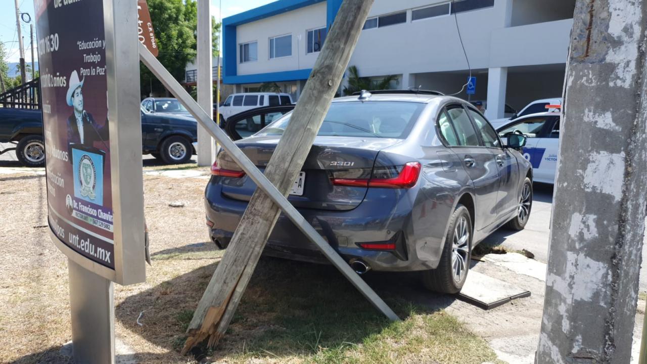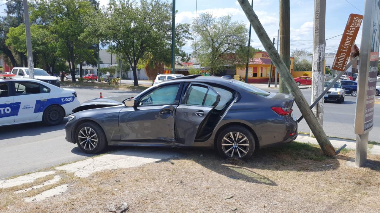 Tras impactarse contra la camioneta el automóvil salió proyectado quedando fuera de control y se estrelló contra un poste de Teléfonos de México que se encontraba sobre el camellón del bulevar López Mateos, el cual arrancó desde su base .