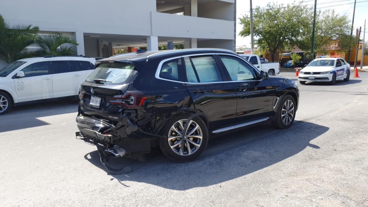 Coincidentemente, dos vehículos de la marca BMW se encontraron de manera abrupta la tarde de este martes para protagonizar un choque de crucero en el bulevar Adolfo López Mateos.