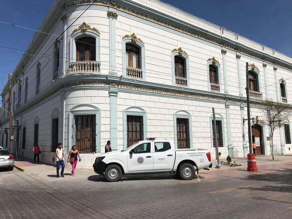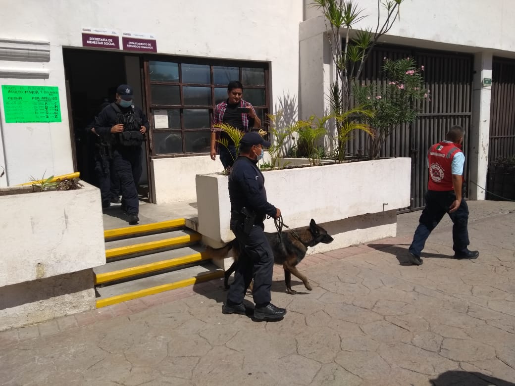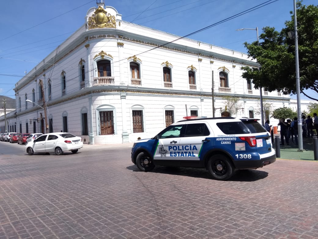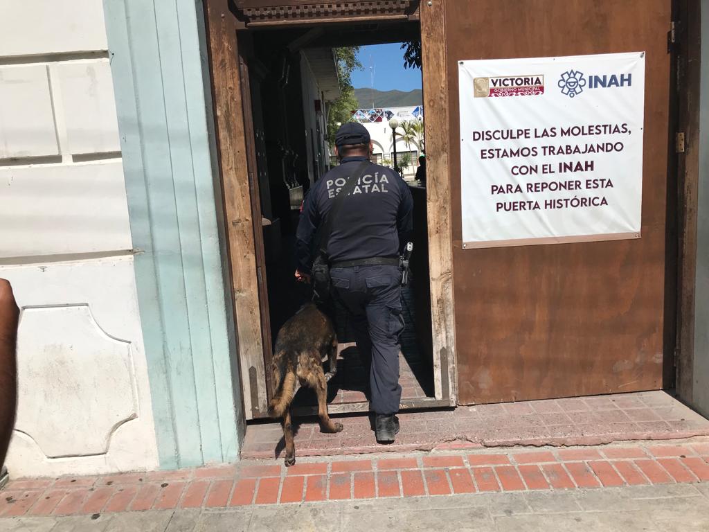 Acompañados también por personal de Protección Civil del Municipio de Victoria los elementos policiacos y el binomio canino realizaron un recorrido por todas las áreas del edificio de la Presidencia Municipal sin encontrar ningún objeto sospechoso.