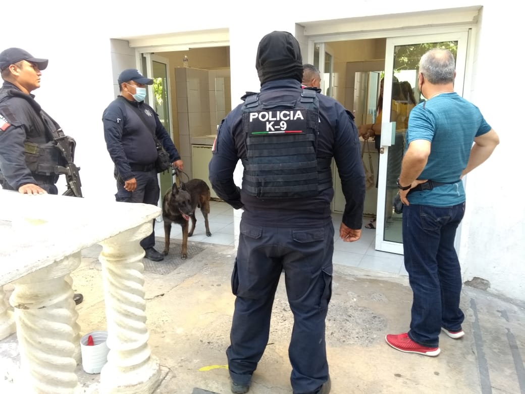 Después de que al lugar llegaron elementos de la Policía Estatal a bordo de cuatro patrullas, posteriormente hizo el arribo un binomio canino con personal especializado en la búsqueda de diversos artefactos y sustancias.