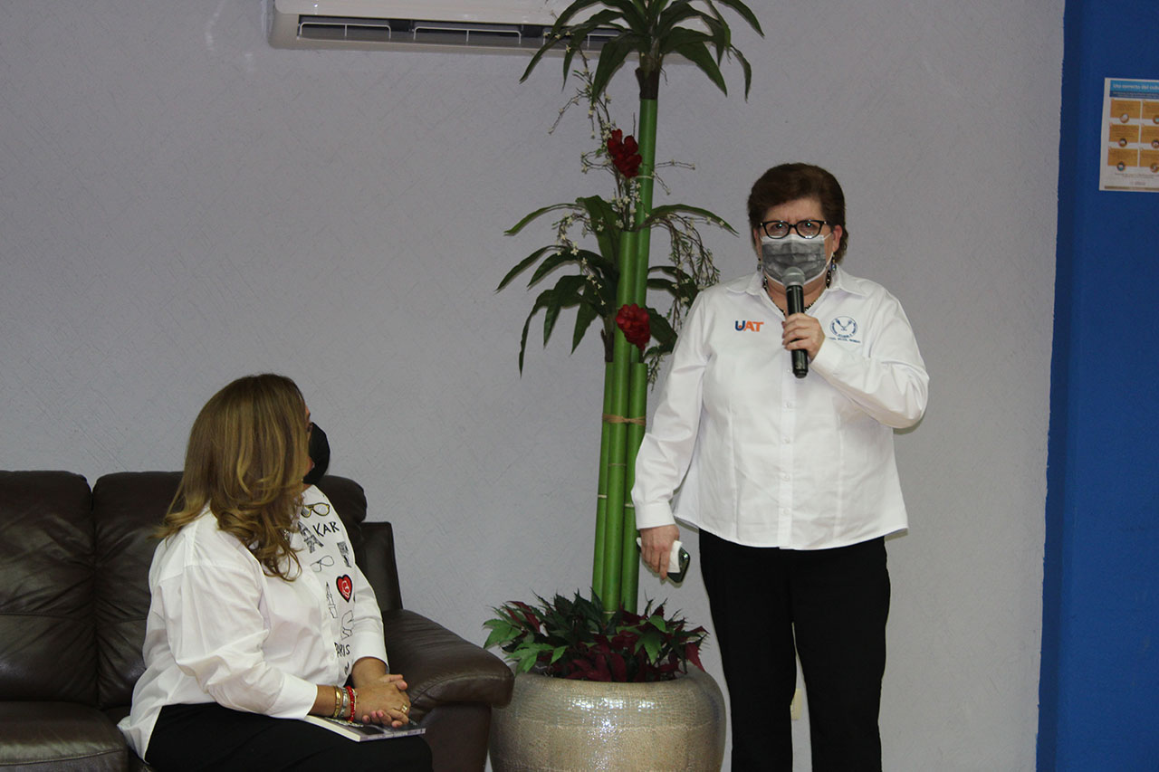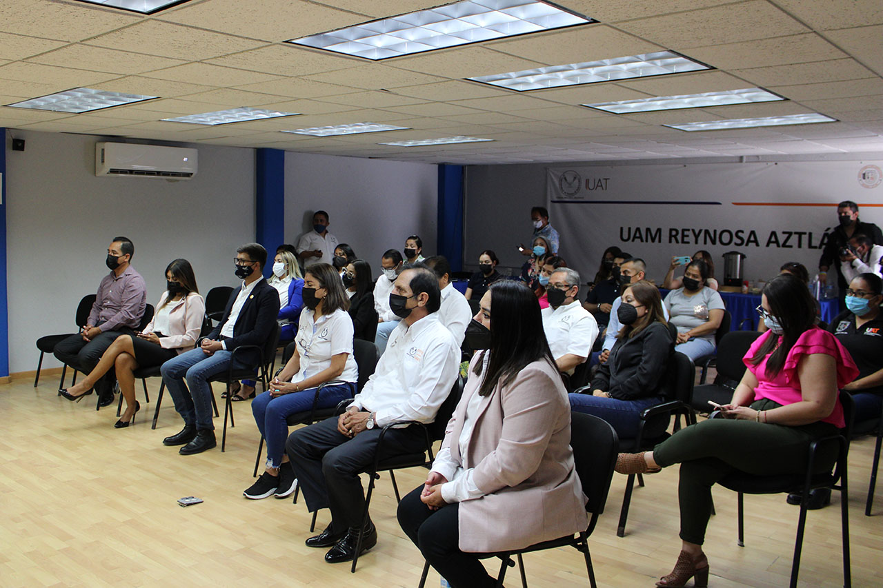 En el evento organizado por la Secretaría de Investigación y Posgrado y desarrollado en la sala audiovisual de la Unidad Académica Multidisciplinaria Reynosa Aztlán, estuvieron la Dra. Mariana Zerón Félix, Secretaria de Investigación y Posgrado de la UAT; la Dra. Cirila Quintero Ramírez, investigadora; así como la Dra. Karla Sotelo, autora y coordinadora de esta publicación.