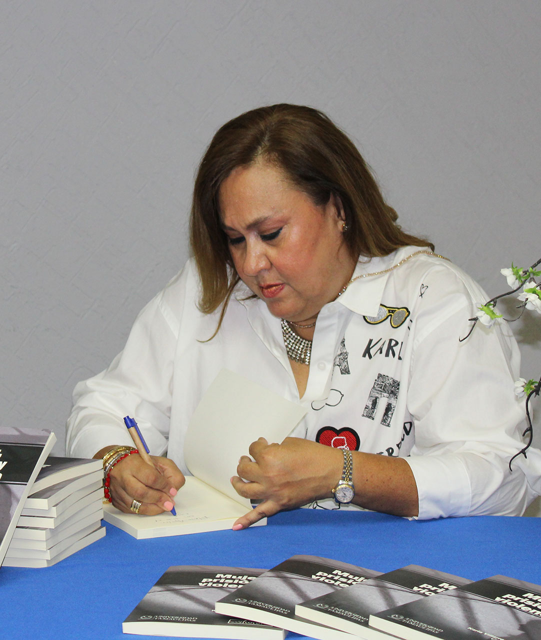 Explicó que en el libro se abordan las consecuencias, situaciones y aspectos de vida que como mujer se viven a diferencia del hombre. Puso como ejemplo que, cuando la mujer está en prisión, en muchos de los casos su condición biológica puede ser de embarazo; da a luz dentro de la prisión, crece con su menor y debe tenerlo hasta los tres años, amamantar en prisión y tener una vida que va a generar un ambiente de consuelo y cercanía dentro de la situación que enfrenta ante la sentencia penal.