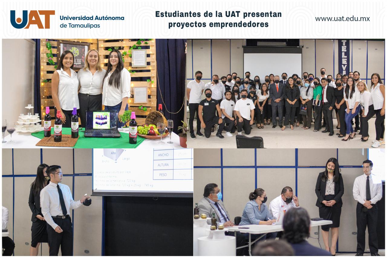 Estudiantes de la Licenciatura en Negocios Internacionales de la Facultad de Derecho y Ciencias Sociales Victoria (FDCSV) de la Universidad Autónoma de Tamaulipas (UAT) llevaron a cabo la exposición de proyectos emprendedores de productos regionales denominado Tamaulipas Exporta 2022.