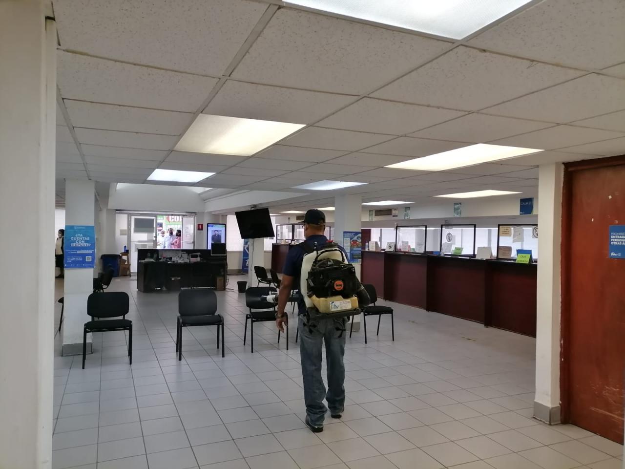 El Presidente municipal Chucho Nader dio a conocer que son cuadrillas de Protección Civil municipal, las que realizan las tareas de sanitización en oficinas y espacios públicos de mayor afluencia como Oficina Fiscal, Delegación Zona norte, Obras Públicas de la zona norte, Registro Civil, entre otros.
