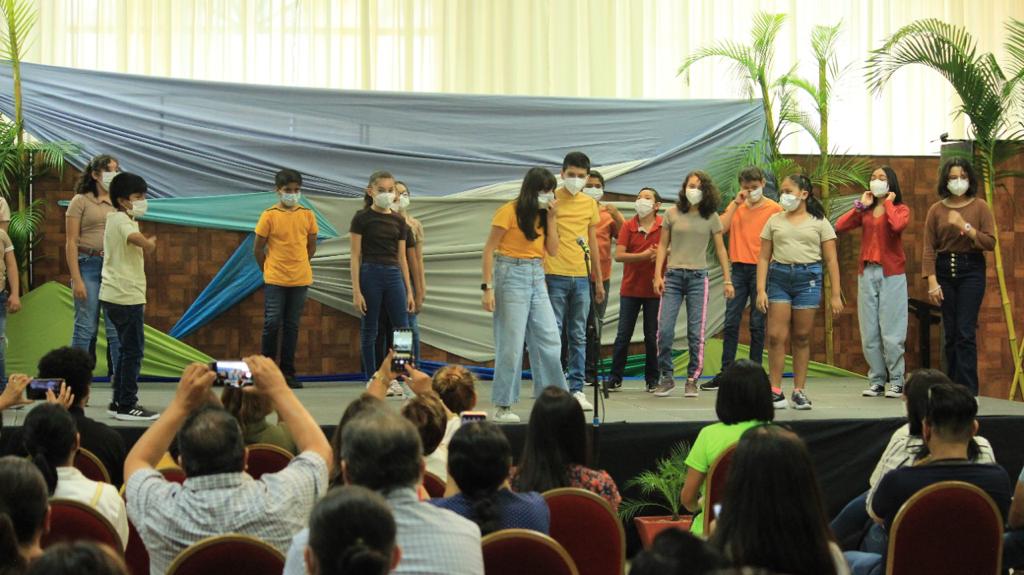 Para cerrar el evento, las niñas, los niños y los adolescentes ataviados como nutrias y cocodrilos, entonaron una canción al ritmo de la melodía de “El Navegante”, que fue interpretada por "Los Trioachis", lo que animó a las familias asistentes a participar con sus palmas.