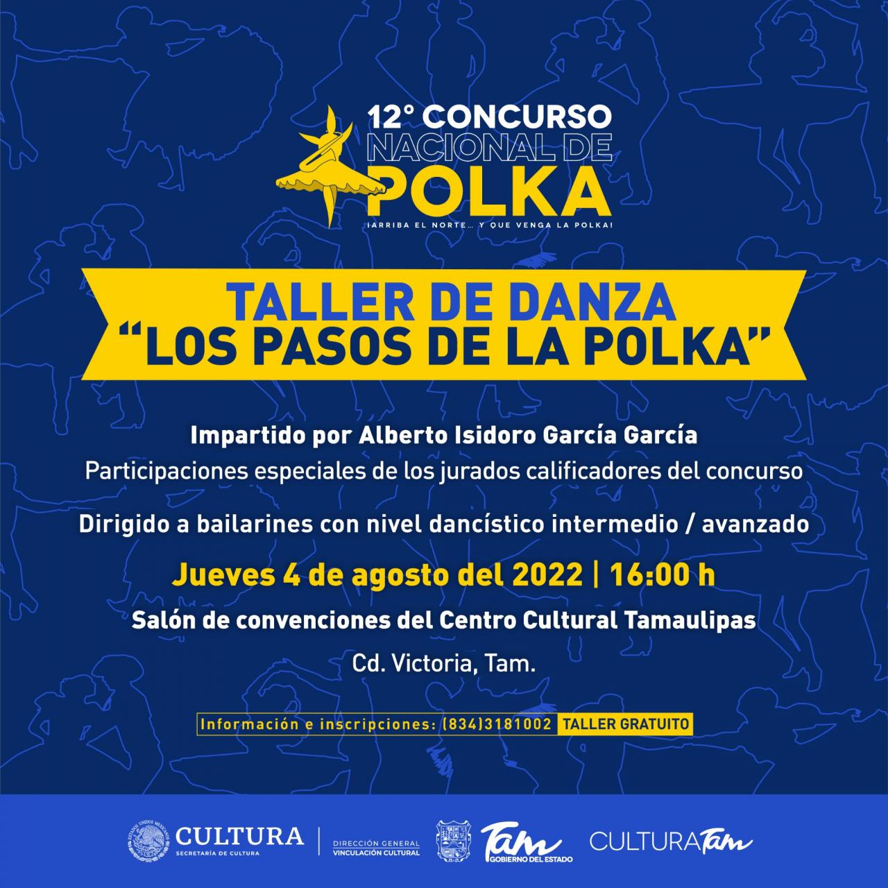 Además, como actividades alternas en el marco del Concurso, el Gobierno del Estado de Tamaulipas en coordinación con la Secretaría de Cultura, tuvo a bien incluir la conferencia “La Polka en México” y el taller “Los pasos de la Polka” dirigido a bailarines de nivel intermedio a avanzado.