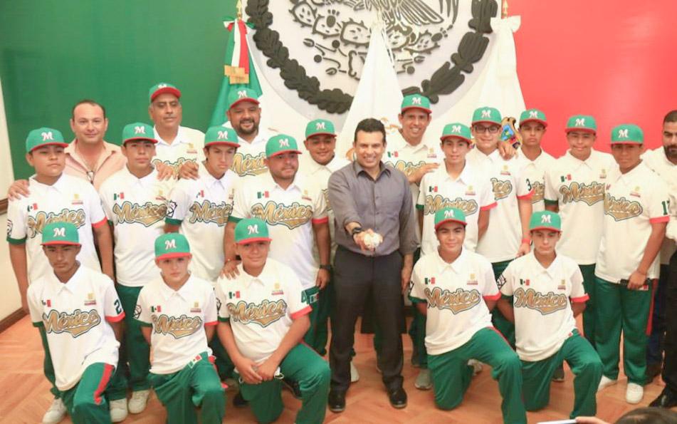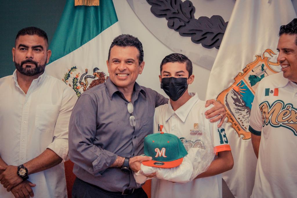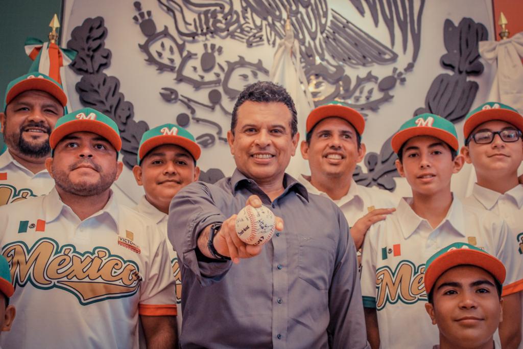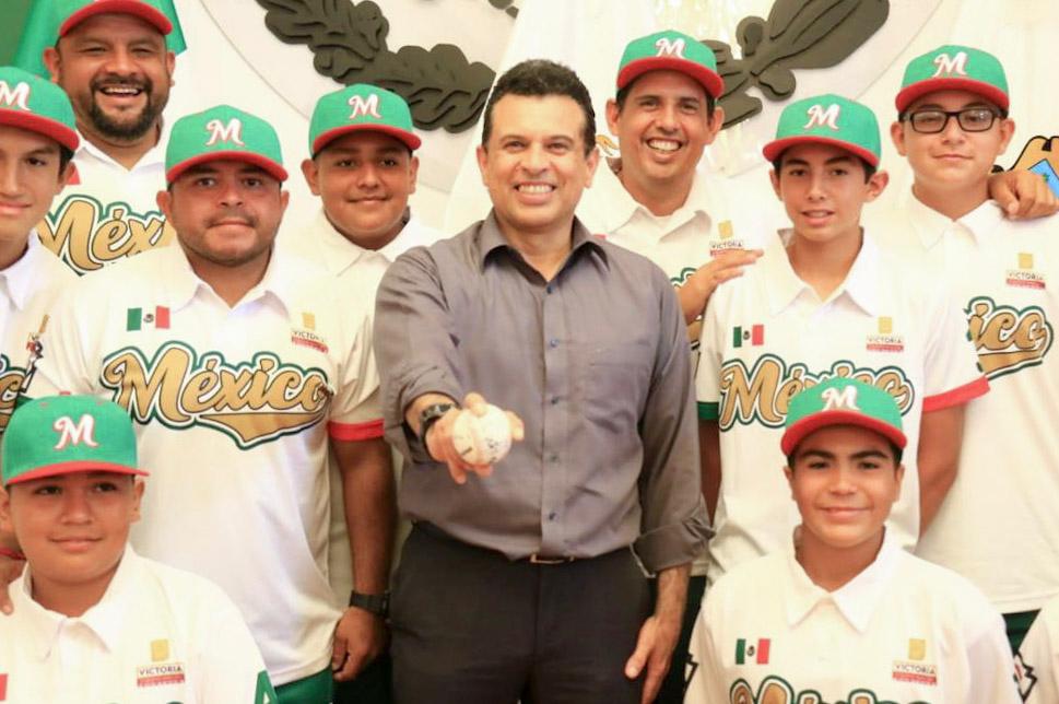 Cd. Victoria. - El alcalde de Victoria Eduardo Gattás Báez entregó uniformes al equipo campeón nacional de béisbol liga Santa María de Aguayo categoría Jr de 13 y 14 años que estará participando en el mundial de la especialidad en El Estado de Michigan, Estados Unidos.