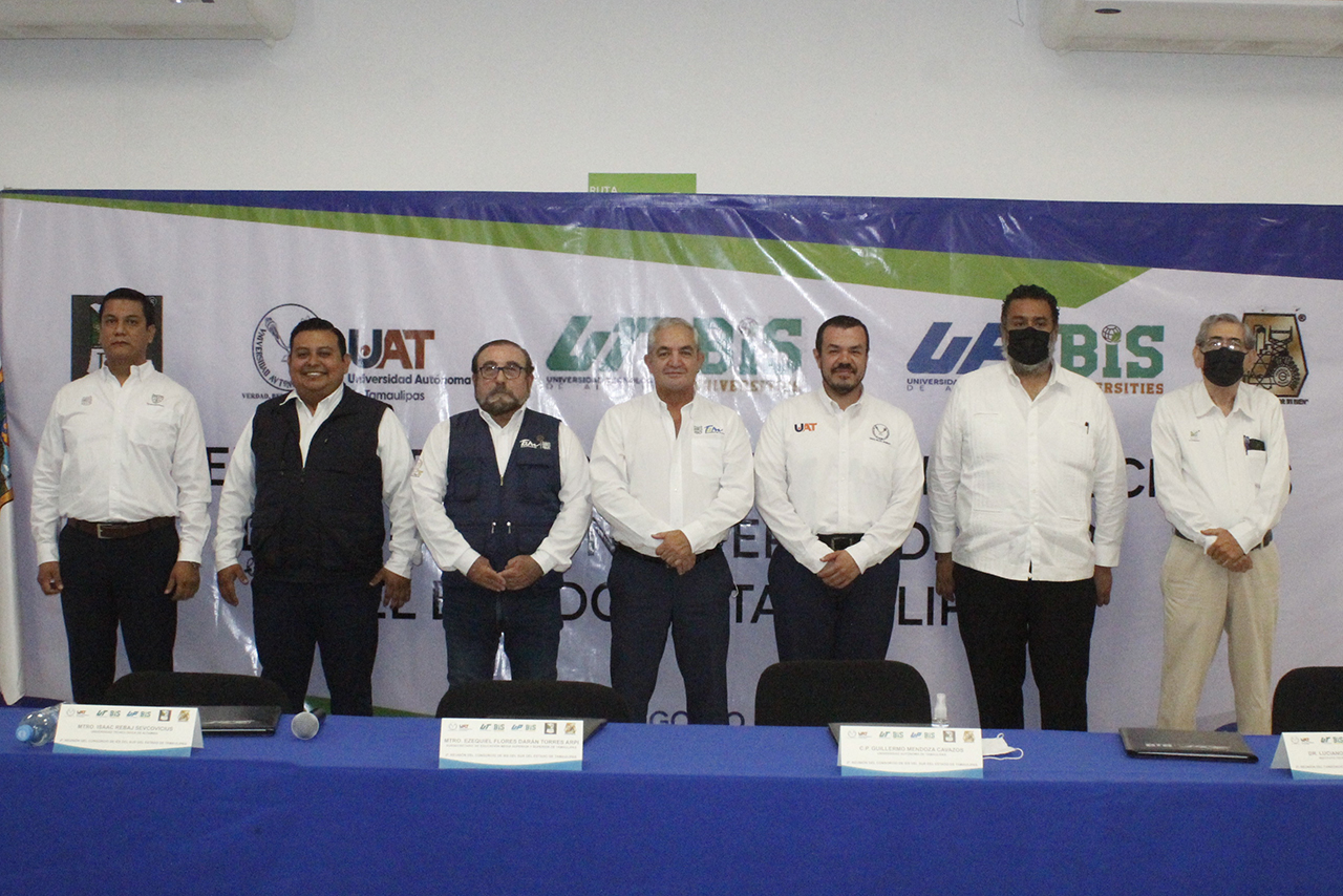 En el evento desarrollado en la Universidad Tecnológica de Altamira, el Rector Guillermo Mendoza Cavazos estuvo acompañado del Dr. Eduardo Arvizu Sánchez, Secretario General de la UAT; y el Mtro. Mauricio Pimentel Torres, Secretario de Vinculación.