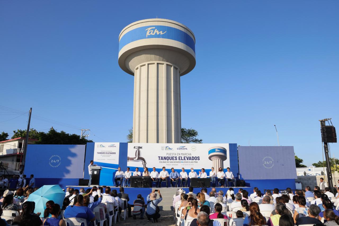 Está acción conjunta con la COMAPA zona conurbada y Obras Públicas consta de la construcción estratégica y activación de los tanques elevados de la colonia Emiliano Zapata en Ciudad Madero y las colonias Jesús Elías Piña y Colinas de San Gerardo en Tampico.