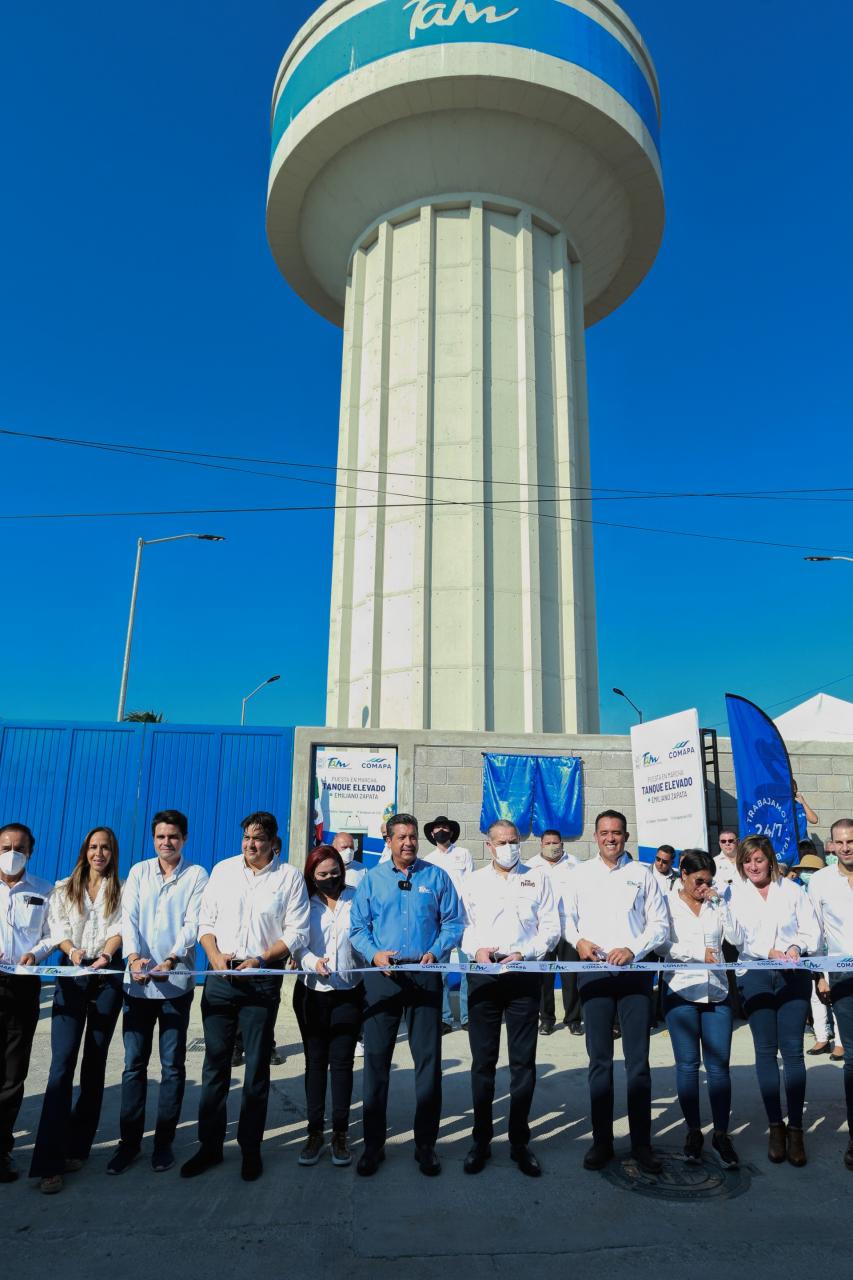 Madero, Tamaulipas.- El Gobernador, Francisco García Cabeza de Vaca, presidió la puesta en marcha de la obra terminada de tanques elevados para agua potable en Ciudad Madero y Tampico a fin de fortalecer la infraestructura, además de mejorar la presión de abastecimiento y garantizar la distribución de agua .