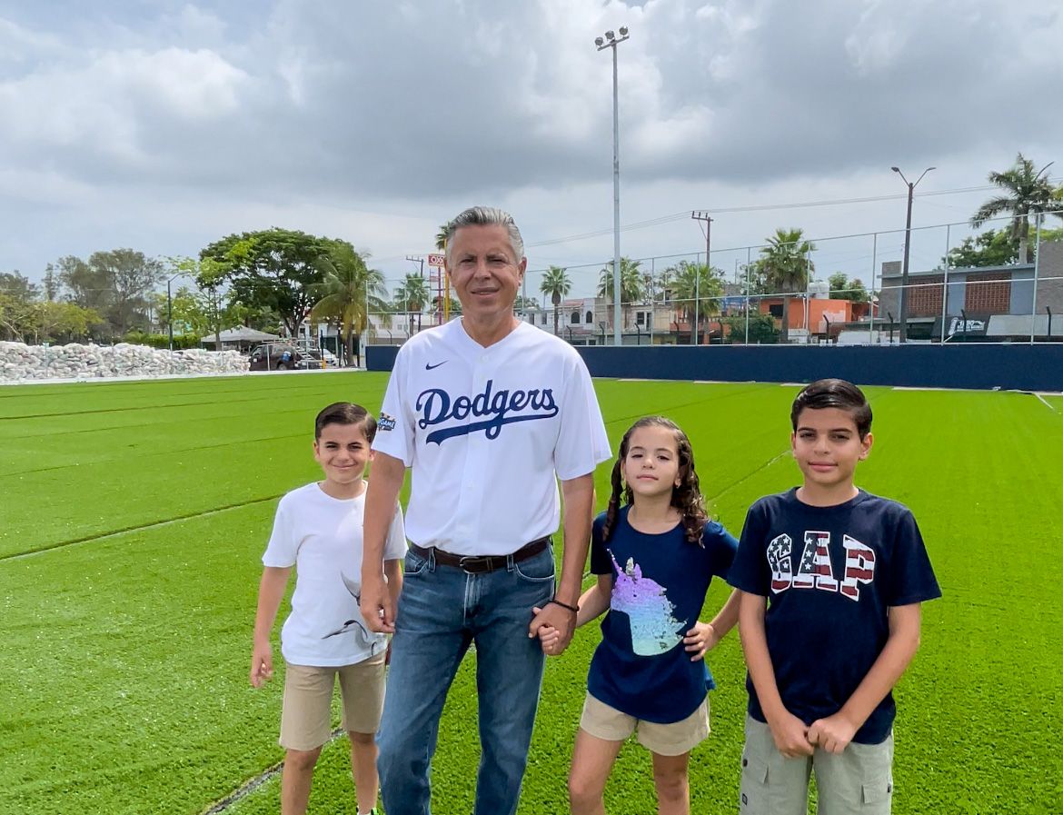 El Presidente municipal Chucho Nader acompañado de su esposa Aída Féres de Nader, Presidenta del Sistema DIF Tampico y sus nietos, supervisó este sábado, los trabajos de reconstrucción en el parque de softbol ubicado en la Unidad Deportiva de Tampico.