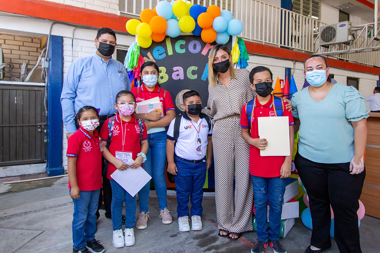 En el inicio de actividades este lunes 22 de agosto, la C. P. Imelda Sustaita de Mendoza, miembro honorario del programa UAT U-NIDO, acudió a las instalaciones de ambas dependencias para presidir los eventos de bienvenida y el saludo a padres y madres de familia.