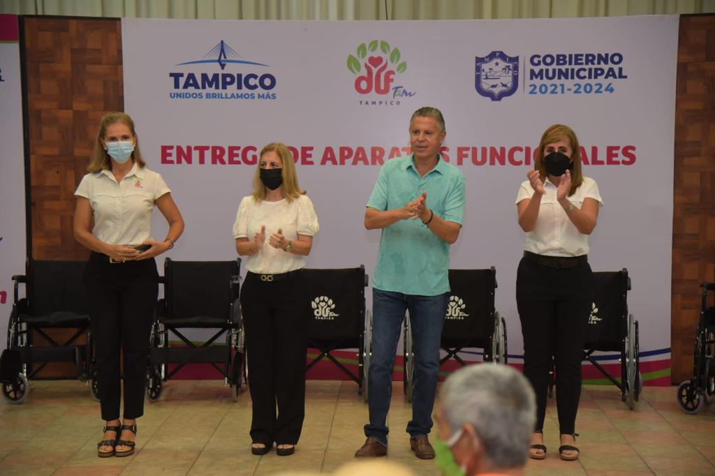 Apoyar a las familias vulnerables y facilitar el traslado de personas con algún tipo de discapacidad fomentando la inclusión, es misión del Sistema DIF Tampico, por ello, el Presidente Municipal Chucho Nader y su esposa Aída Féres de Nader, Presidenta del organismo encabezaron este martes la entrega de 59 aparatos funcionales y de movilidad asistida, mediante una inversión de 109 mil pesos.