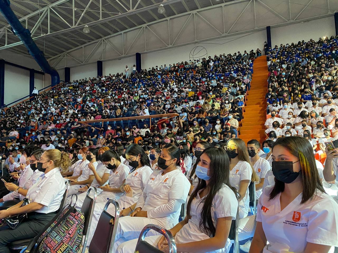 En su mensaje subrayó que la nueva ideología de la UAT es contar con alumnos comprometidos con su institución y con su entorno, y añadió: “Ser universitario es más que tomar clases en un salón, significa participar activamente en las distintas actividades que ofrece la vida universitaria”.