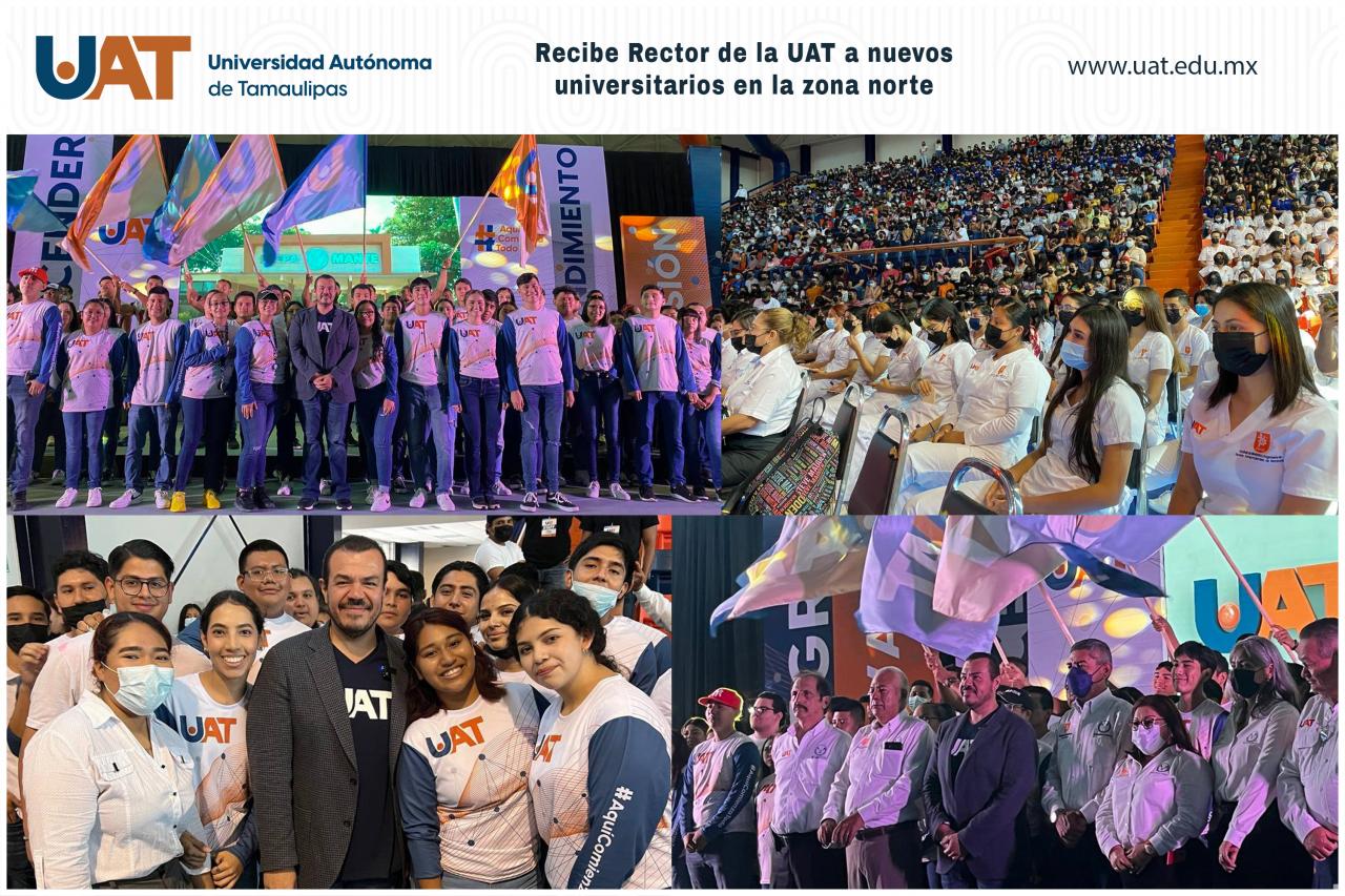 Con un emotivo evento celebrado en el Gimnasio Multidisciplinario de Reynosa, el C. P. Guillermo Mendoza Cavazos, Rector de la Universidad Autónoma de Tamaulipas (UAT), recibió a los universitarios de nuevo ingreso que inician sus estudios en las facultades y unidades académicas de las sedes de Reynosa, Río Bravo, Matamoros y Valle Hermoso.