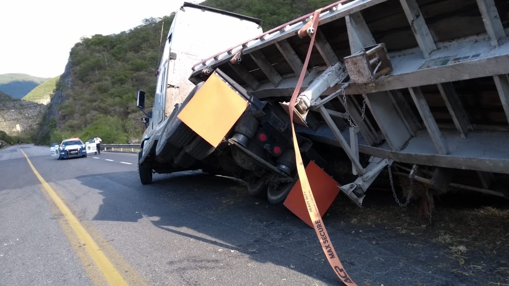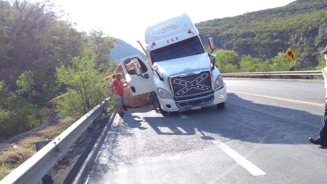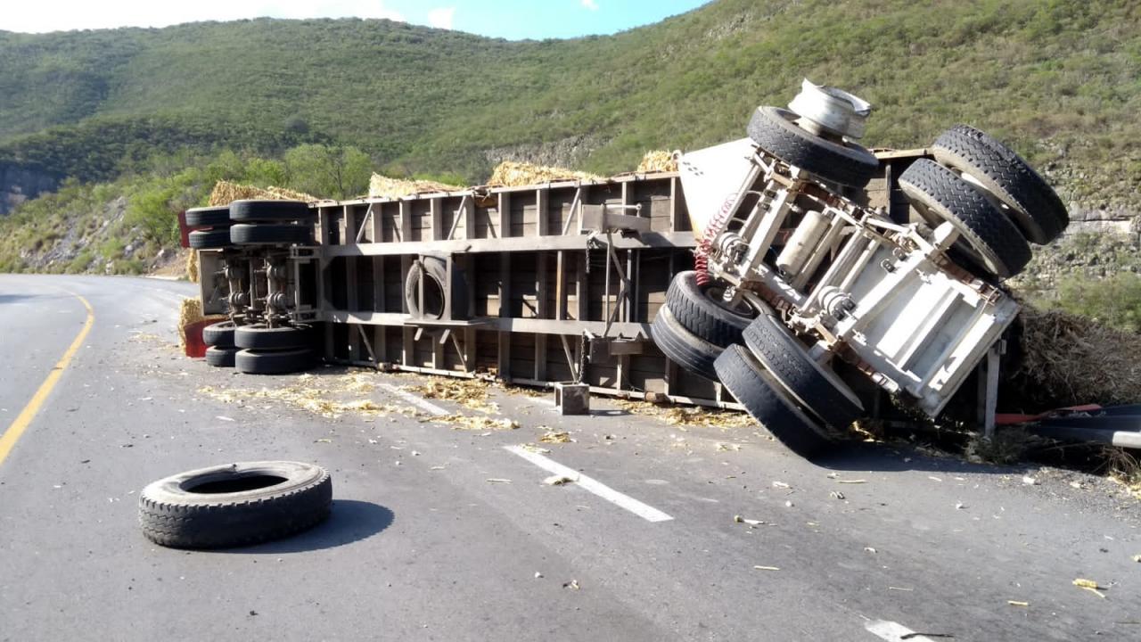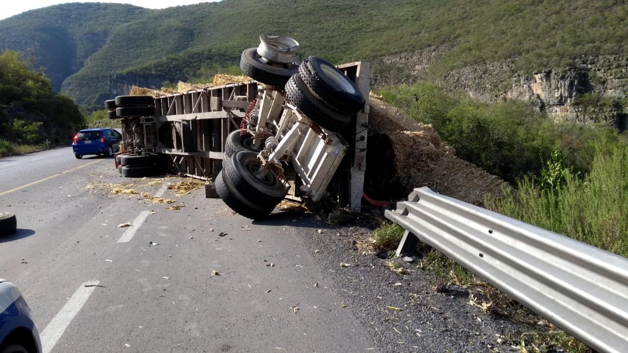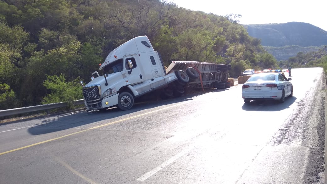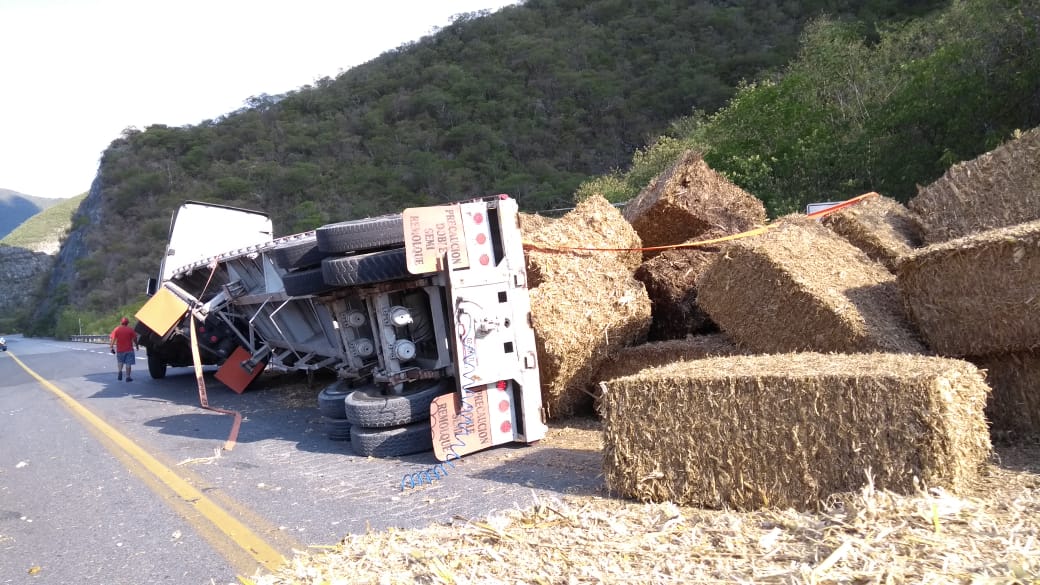 El accidente que pudo acabar en una tragedia ocurrió cuando un tráiler de la marca Freightliner doble remolque que transportaba pacas de forraje para ganado circulaba procedente del estado de Guanajuato con destino a Linares Nuevo León.