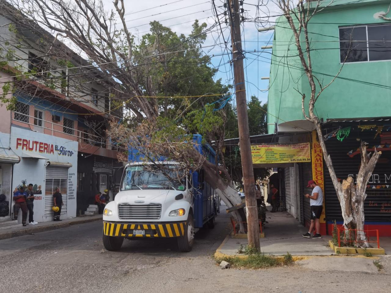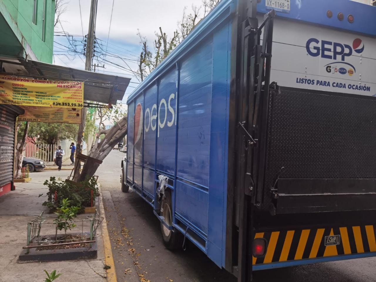 Empleados de una empresa refresquera dejaron sin energía eléctrica a un sector de la colonia Guadalupe Mainero después de que derribaran un árbol con un camión repartidor.