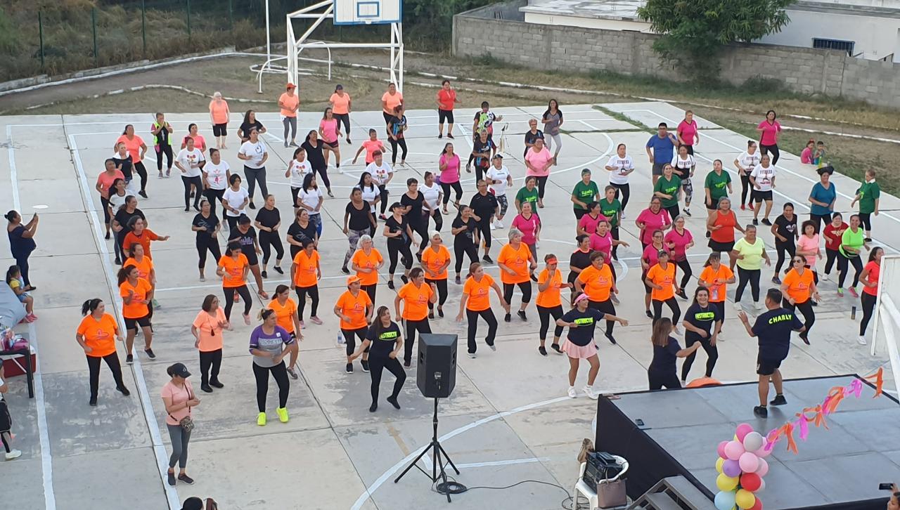 Certificada en fitness y con más de 12 años de experiencia, la profesora Fabiola Gutiérrez, dirigió las dinámicas de ejercitación con ritmo latino, sumándose instructores deportivos adscritos al Municipio.