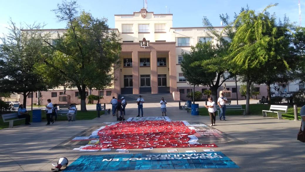 Entrevistada en el lugar, una de las integrantes de la Red de Desaparecidos, Josefina de León, manifestó; “en el marco del Día Internacional de las Víctimas de Desaparición Forzada nos quisimos manifestar con una muestra artística que es el mapa de Tamaulipas”.