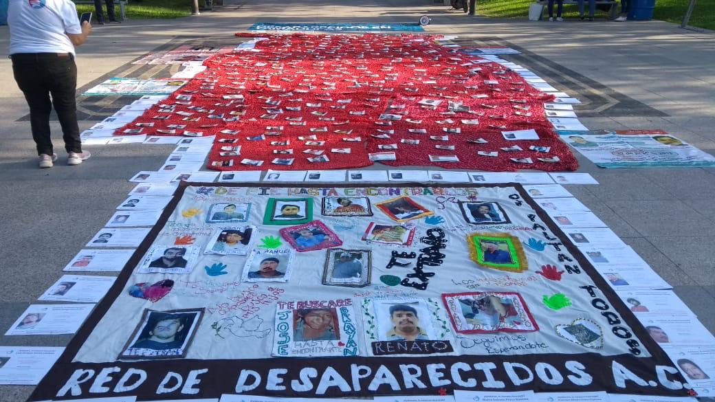 Integrantes de la Red de Desaparecidos A.C. realizan esta mañana un plantón en la Plaza Juárez para exigir a las autoridades agilicen las labores de búsqueda de sus seres queridos.