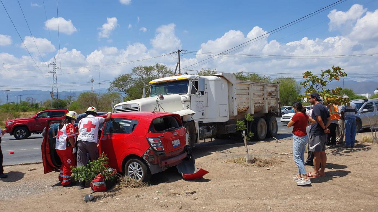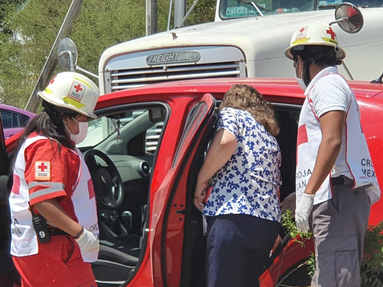En el lugar del accidente, ubicado en el crucero del libramiento Naciones Unidas y José Sulaimán Chagnón, le brindaron atención prehospitalaria a una persona del sexo femenino que conducía el automóvil.
