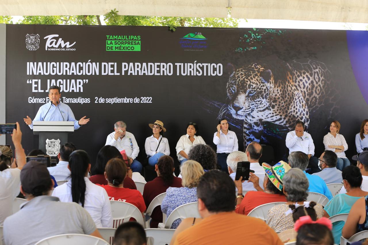 Gómez Farías, Tamaulipas.- El Gobernador, Francisco García Cabeza de Vaca, inauguró este viernes el paradero turístico El Jaguar, infraestructura icónica de esta especie endémica en los municipios de Gómez Farías, Jaumave, Xicoténcatl y Ocampo, con el objetivo el resaltar el cuidado y preservación de este felino en su hábitat tamaulipeco.