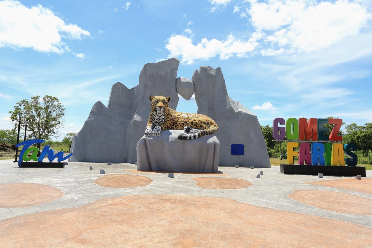 El Parador del Jaguar en Gómez Farías cuenta con un monumento que muestra un jaguar posando sobre una roca, al fondo una representación del Cerro de la Campana, es cual también es un símbolo de la Reserva de la Biosfera de El Cielo, así mismo se busca que este parador turístico sea un punto de encuentro entre prestadores de servicios y turistas de Gómez Farías y la región y que a su vez destaque la diversidad y atractivos naturales. Gracias a estas acciones se impulsa la apertura para el desarrollo del área.