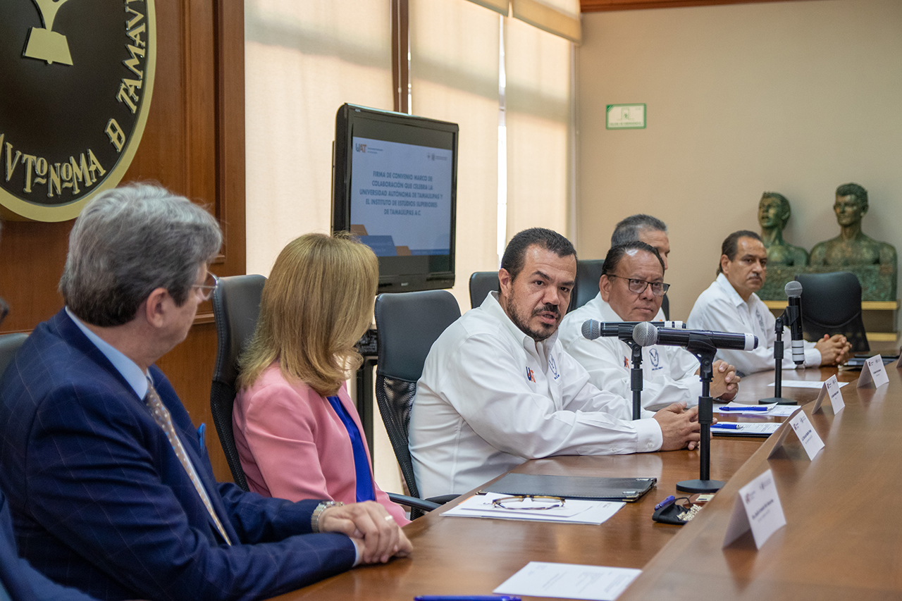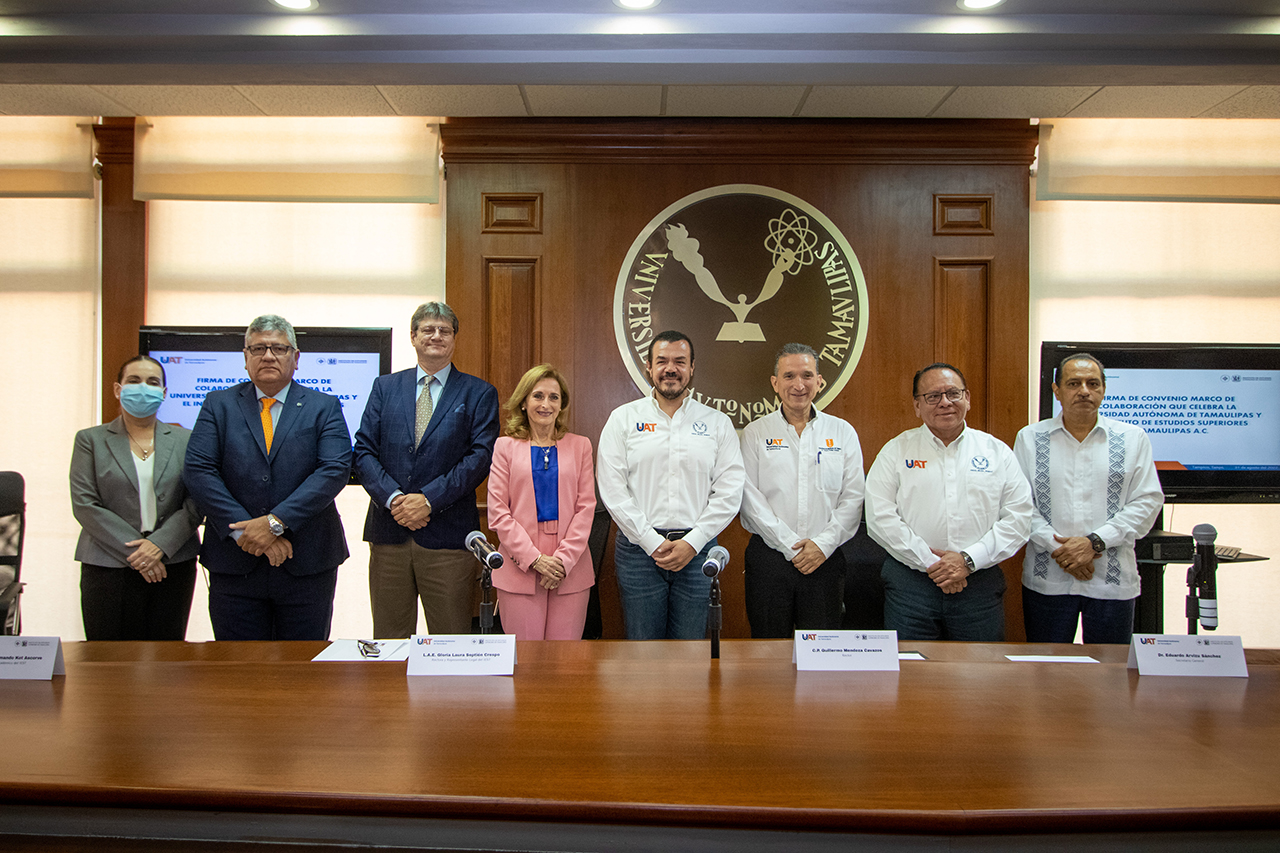 La Universidad Autónoma de Tamaulipas (UAT) y el Instituto de Estudios Superiores de Tamaulipas (IEST) de la Red de Universidades Anáhuac firmaron un convenio marco de colaboración que fortalecerá el trabajo conjunto en materia de salud, además de abrir oportunidades de generar programas específicos en las áreas de investigación, docencia, posgrado, servicio social, entre otras.
