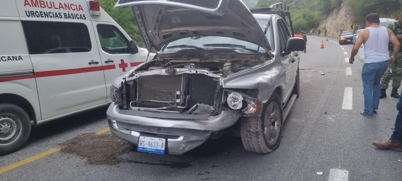Al intentar incorporarse a la carretera para dirigirse hacia Jaumave, el conductor de la RAM no se percató que circulaba en sentido de norte a sur un vehículo Malibú, por lo que la camioneta fue impactada por el automóvil.
