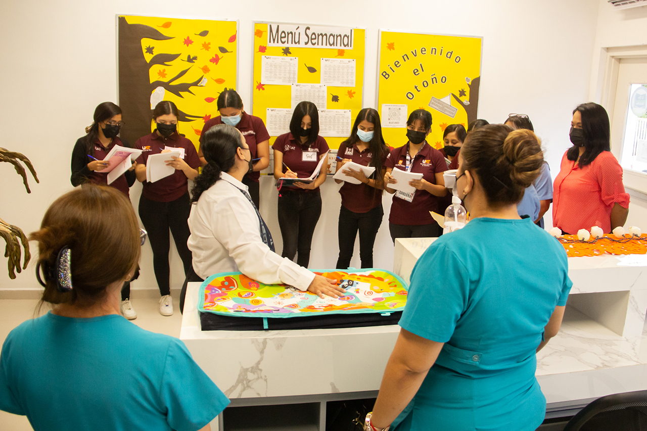 Durante el recorrido, las estudiantes fueron acompañadas por la C. P. Imelda Sustaita de Mendoza, miembro honorario del equipo UAT U-NIDO, así como la Dra. Elsa Fernanda González Quintero, directora de la UAMCEH; y la Mtra. Susana Alejandra García Caballero, titular de la materia de Servicios Educativos Inicial y Preescolar.
