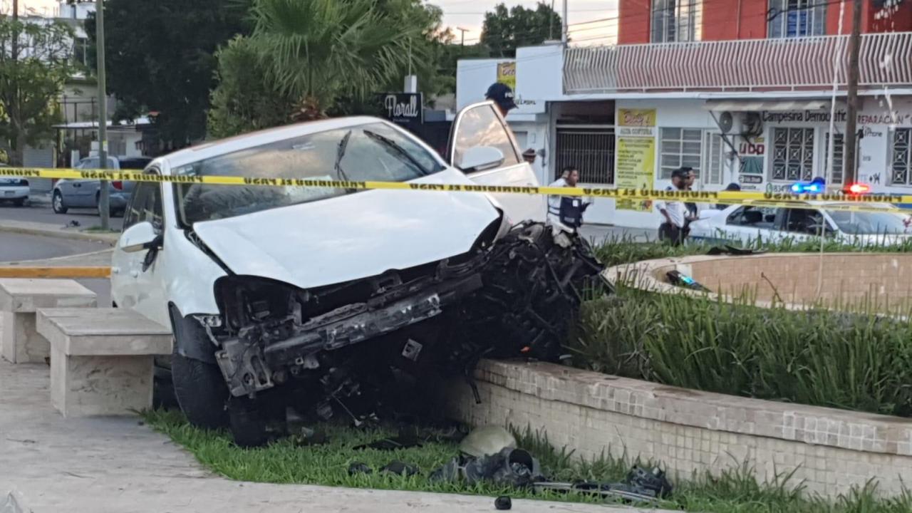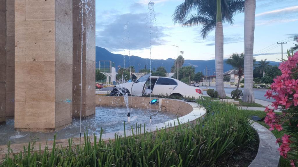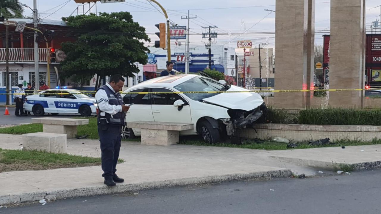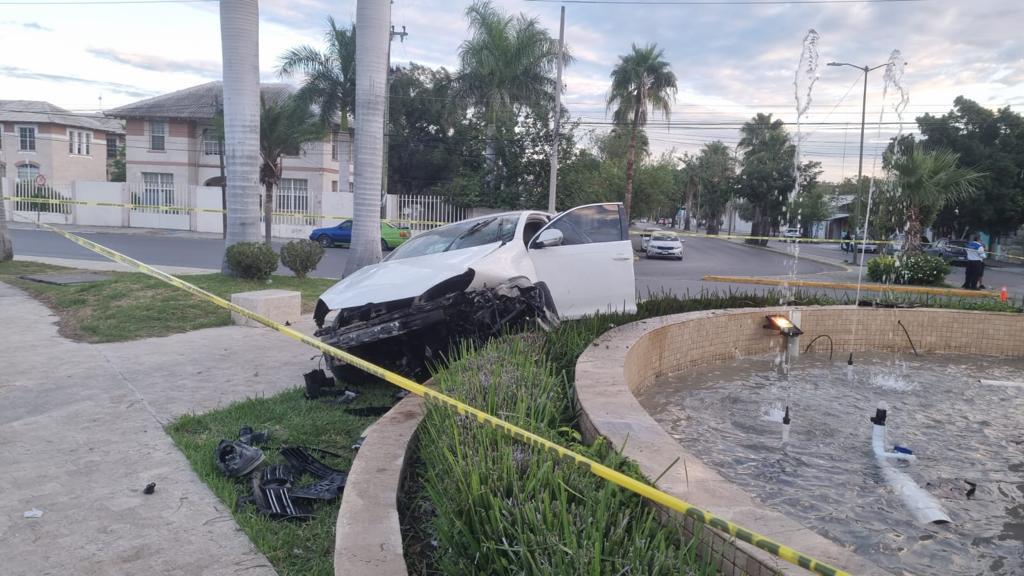 En su posición final el vehículo, que portaba placas de Tamaulipas, quedó entre unas bancas y la base de la fuente que se ubica en el lugar y en su interior el cuerpo sin vida de su conductor, el cual no portaba cinturón de seguridad.