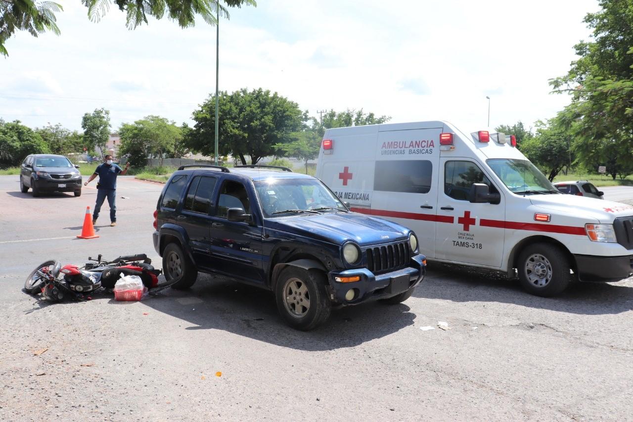Al llegar al crucero con la Calle San Francisco, en la entrada a la Colonia El Mirador al paso de la motocicleta se atravesó una camioneta de la marca Jeep tipo Liberty la cual era tripulada por una dama en sentido de oriente a poniente.