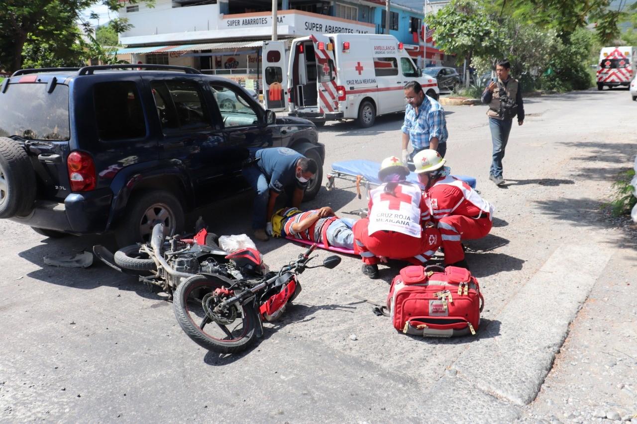 Una pareja que viajaba a bordo de una motocicleta resultó lesionada después de impactarse contra una camioneta que les cerró el paso.